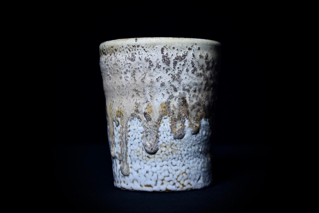 サイズ/size(cm) Φ7.3xH8.9 掘り出した粘土を造形して文様を施したPattern作品の型をとり、その型に向かってガラスを吹き込み、粘土表面の細かい凹凸や文様を転写したガラス作品。 分厚くむっちりとした作りになっており、ガラスの素材としての存在を感じる心地よい重さに仕上がっています。 原土を勢いよくロクロでひいたような、造形の動きが観察できる作品です。 ※作品底面には△のサインが入っています。 ※こちらの作品は桐箱付き(紐無し)となっております。