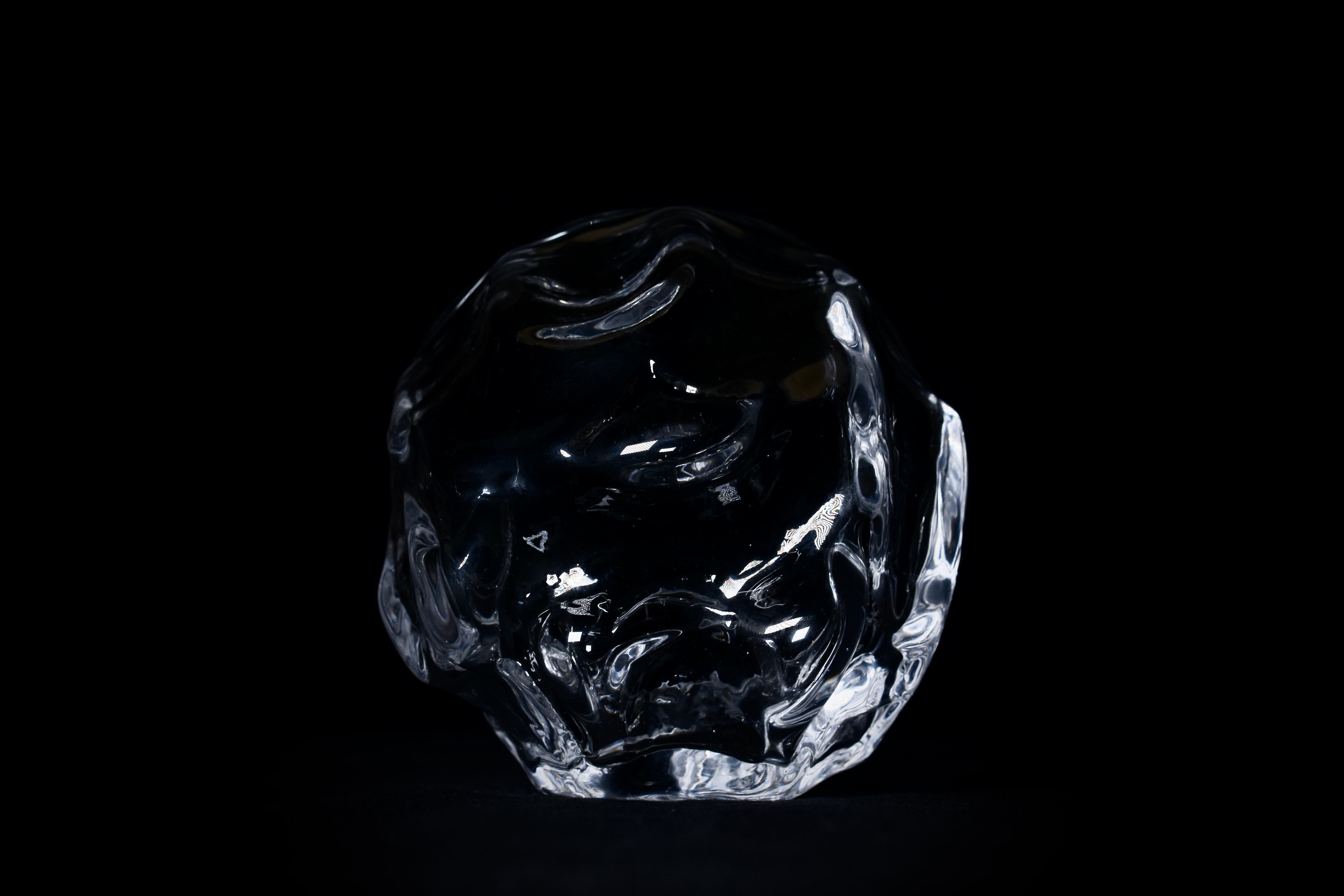 これまで制作したガラス作品よりも分厚くむっちりとした作りになっており、ガラスの素材としての存在を感じる心地よい重さに仕上がっています。