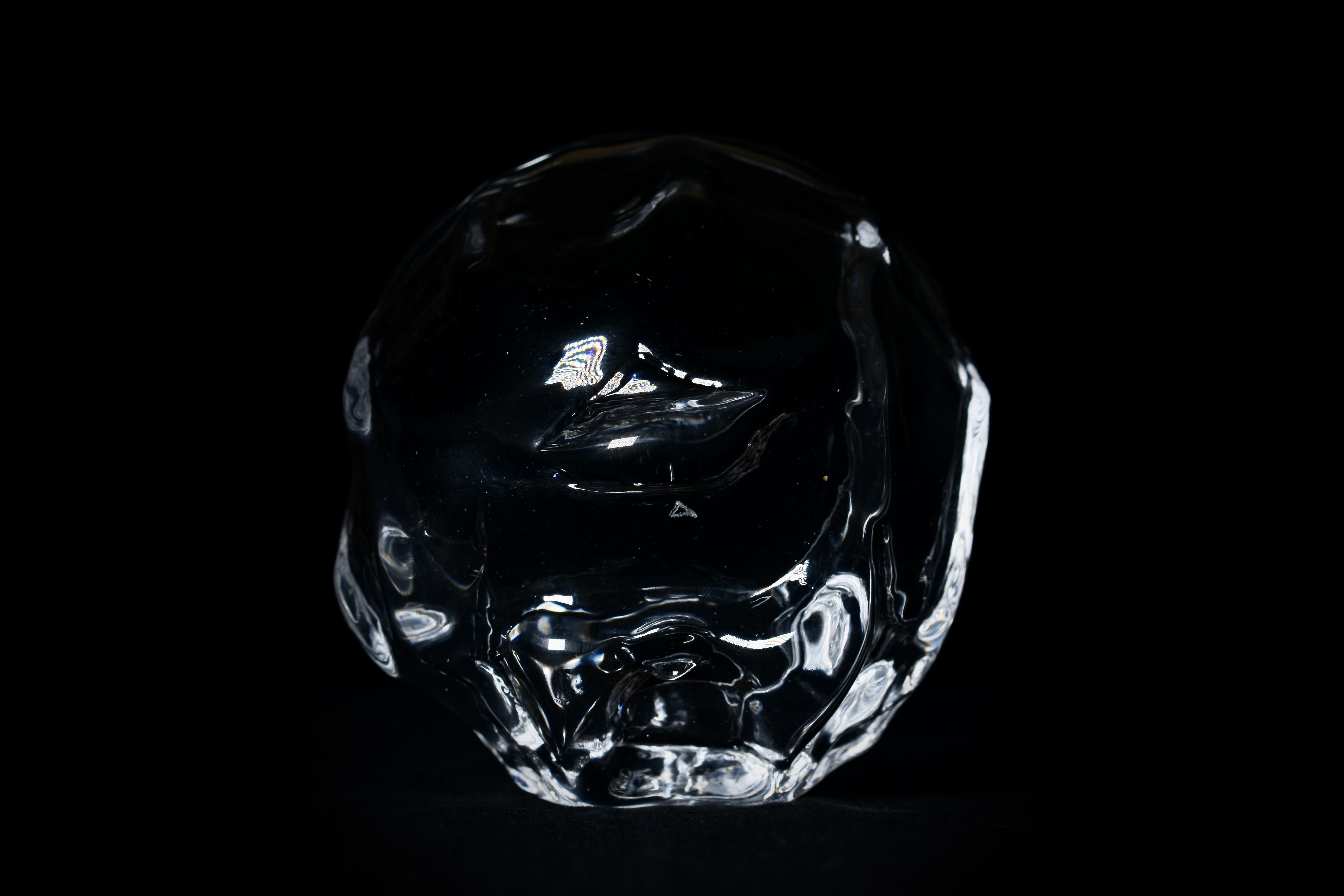 これまで制作したガラス作品よりも分厚くむっちりとした作りになっており、ガラスの素材としての存在を感じる心地よい重さに仕上がっています。