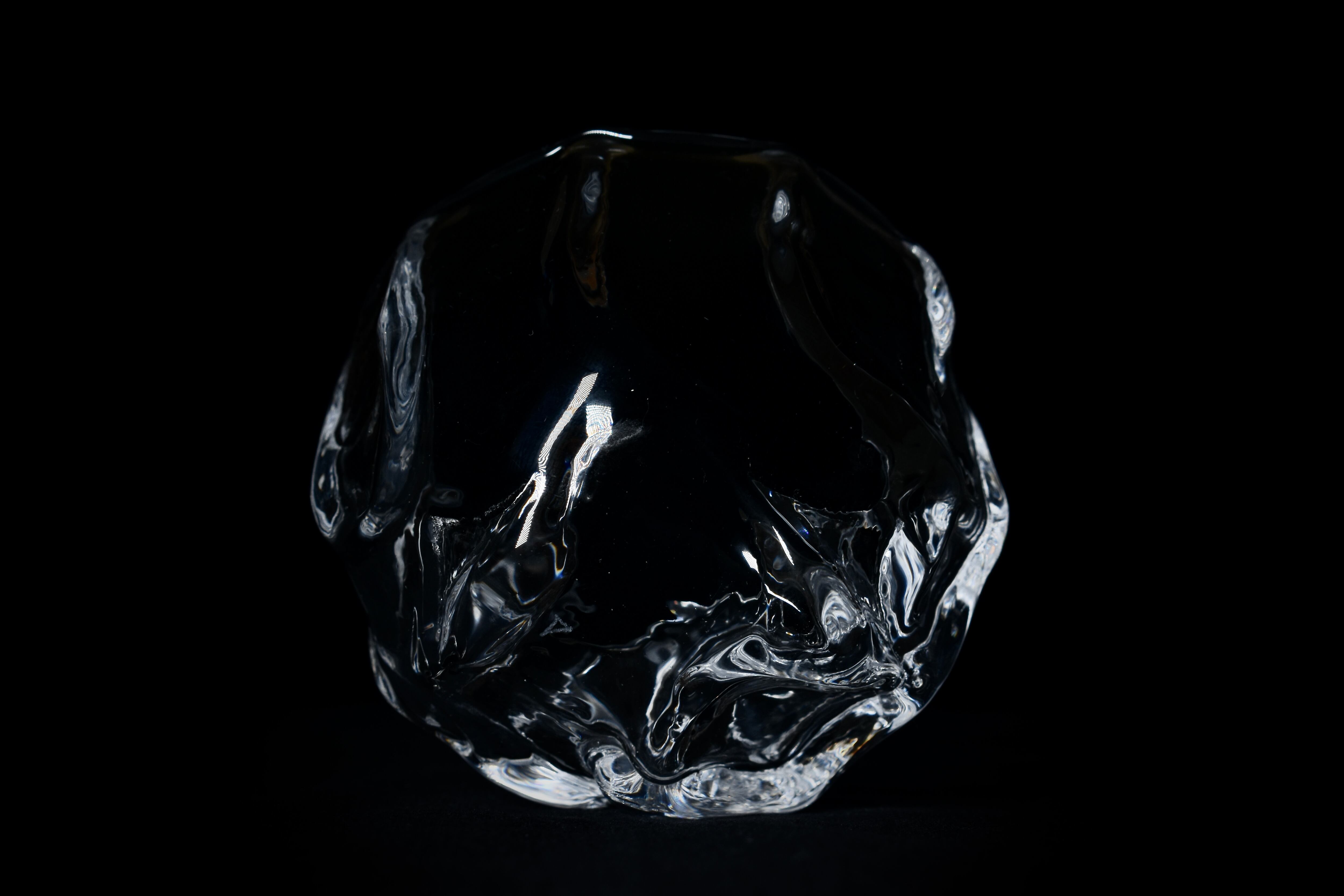 これまで制作したガラス作品よりも分厚くむっちりとした作りになっており、ガラスの素材としての存在を感じる心地よい重さに仕上がっています。