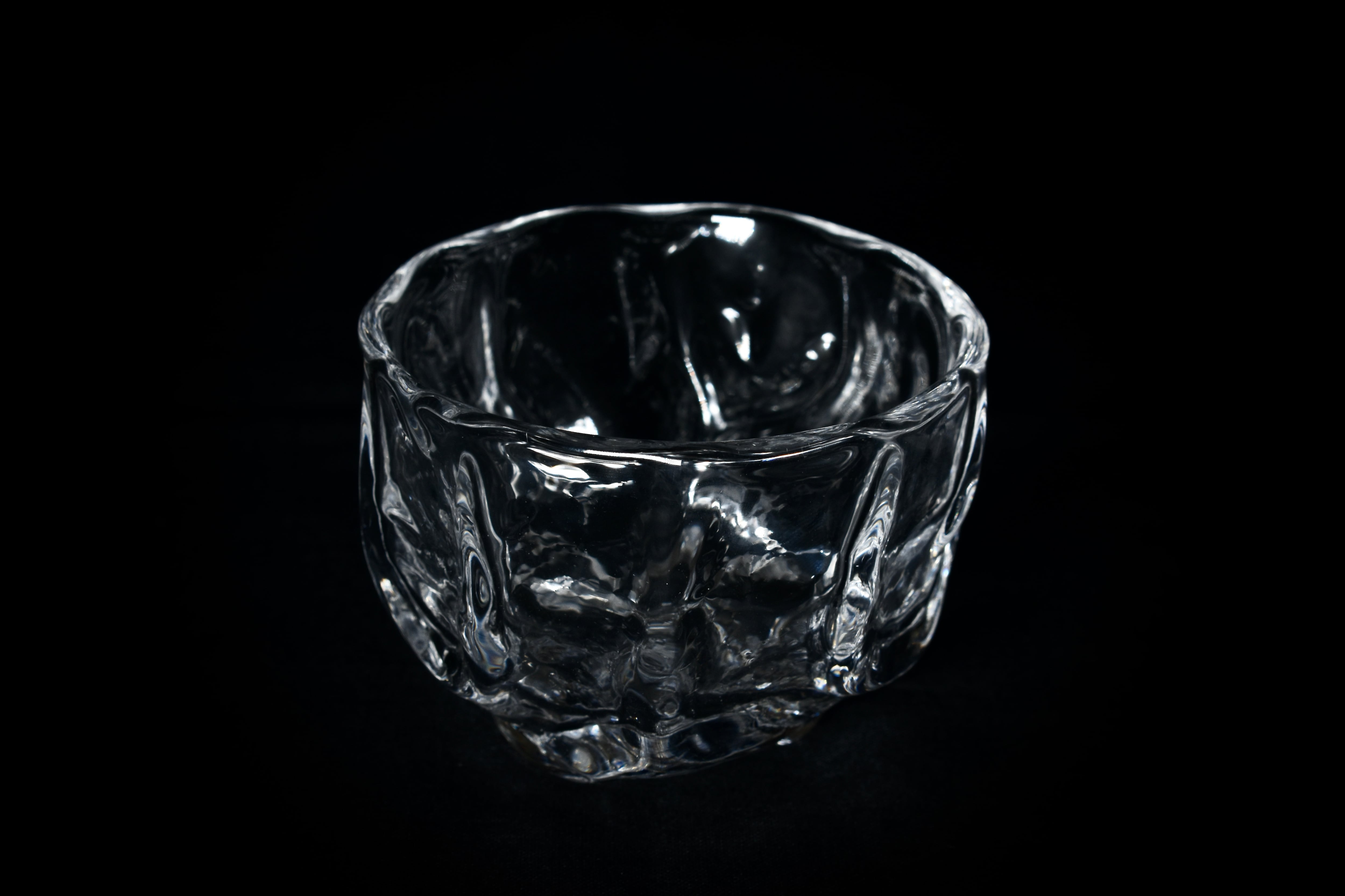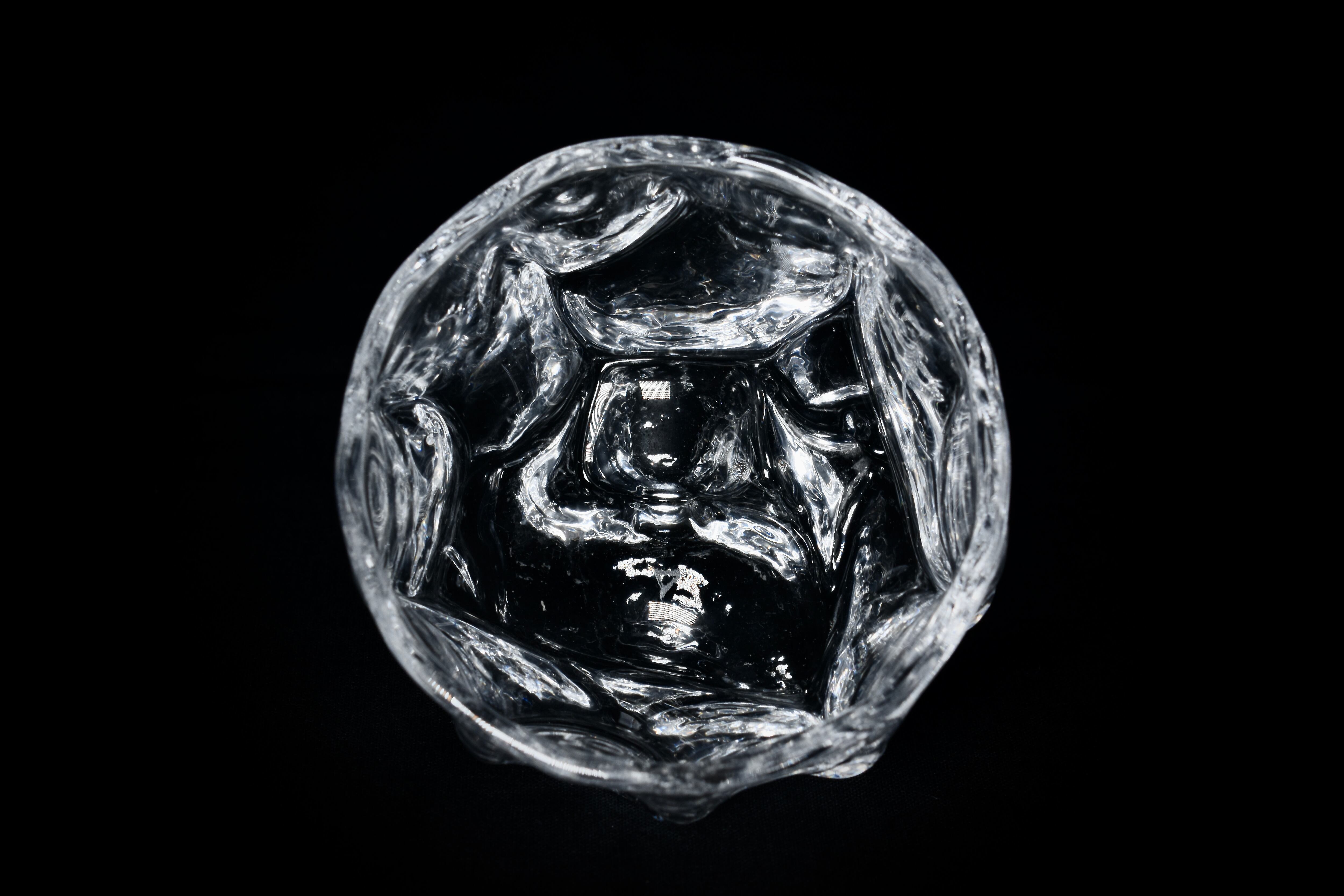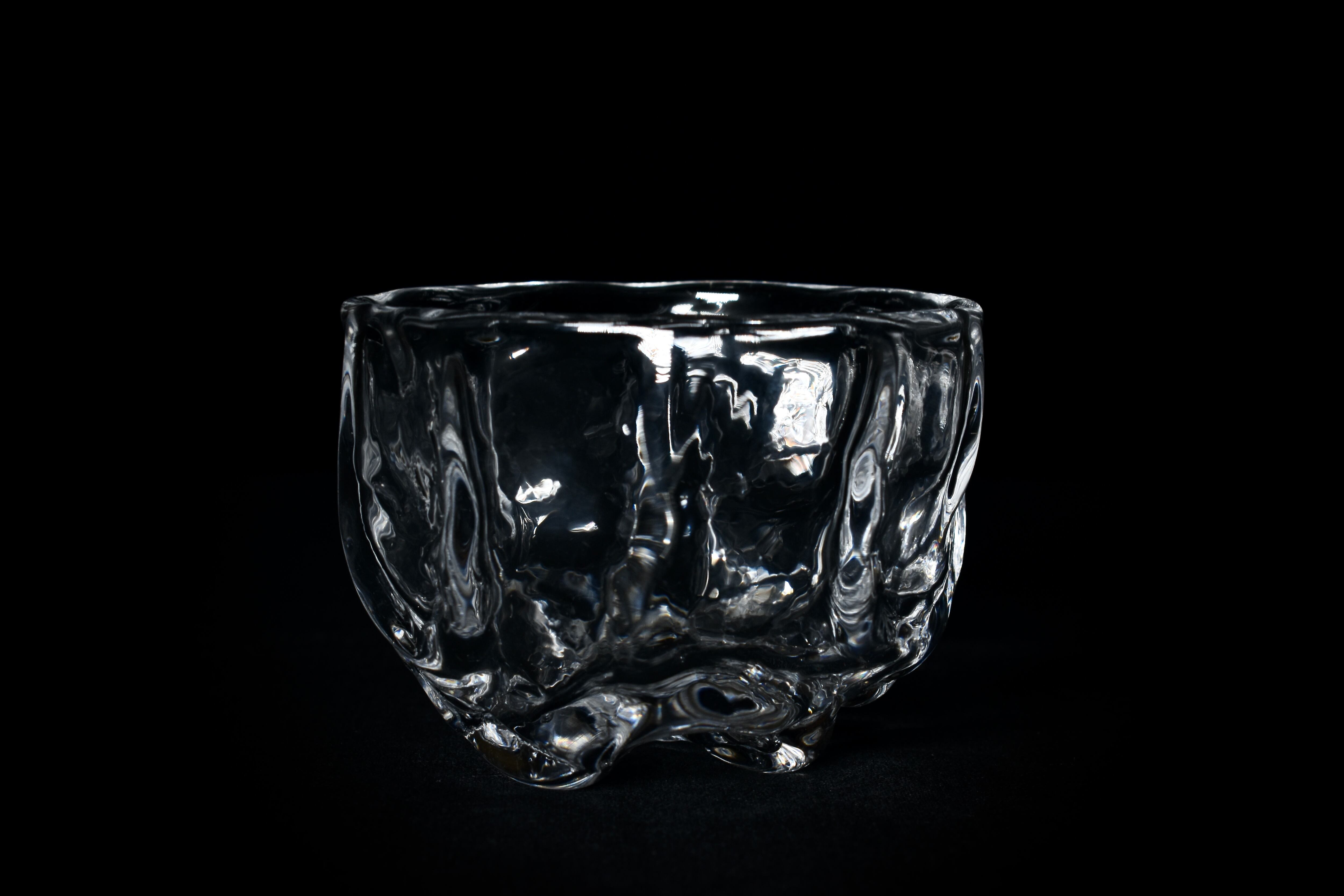 掘り出した粘土を造形して文様を施したPattern Cupの型をとり、その型に向かってガラスを吹き込み、粘土表面の細かい凹凸や文様を転写したガラス作品。