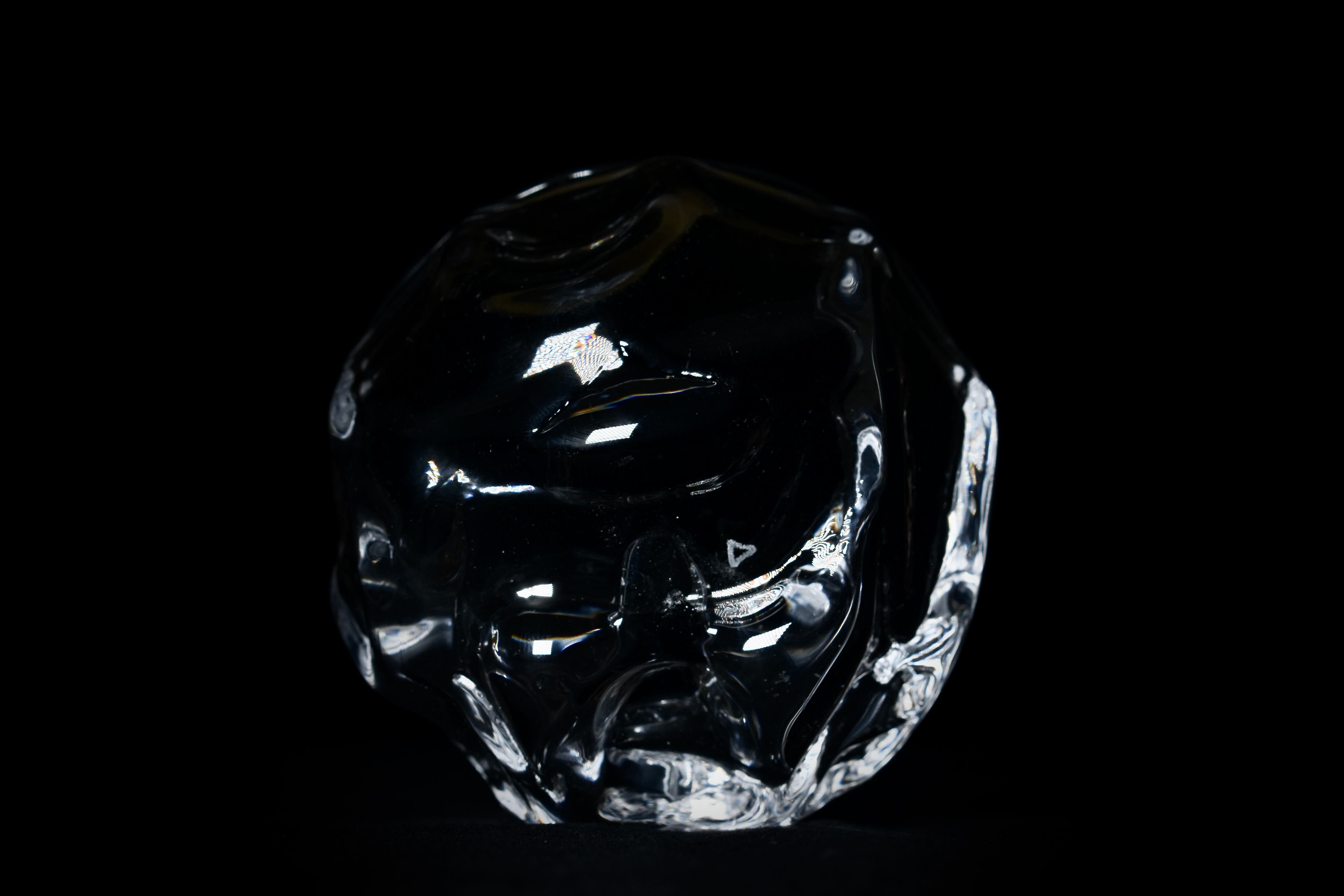 これまで制作したガラス作品よりも分厚くむっちりとした作りになっており、ガラスの素材としての存在を感じる心地よい重さに仕上がっています。