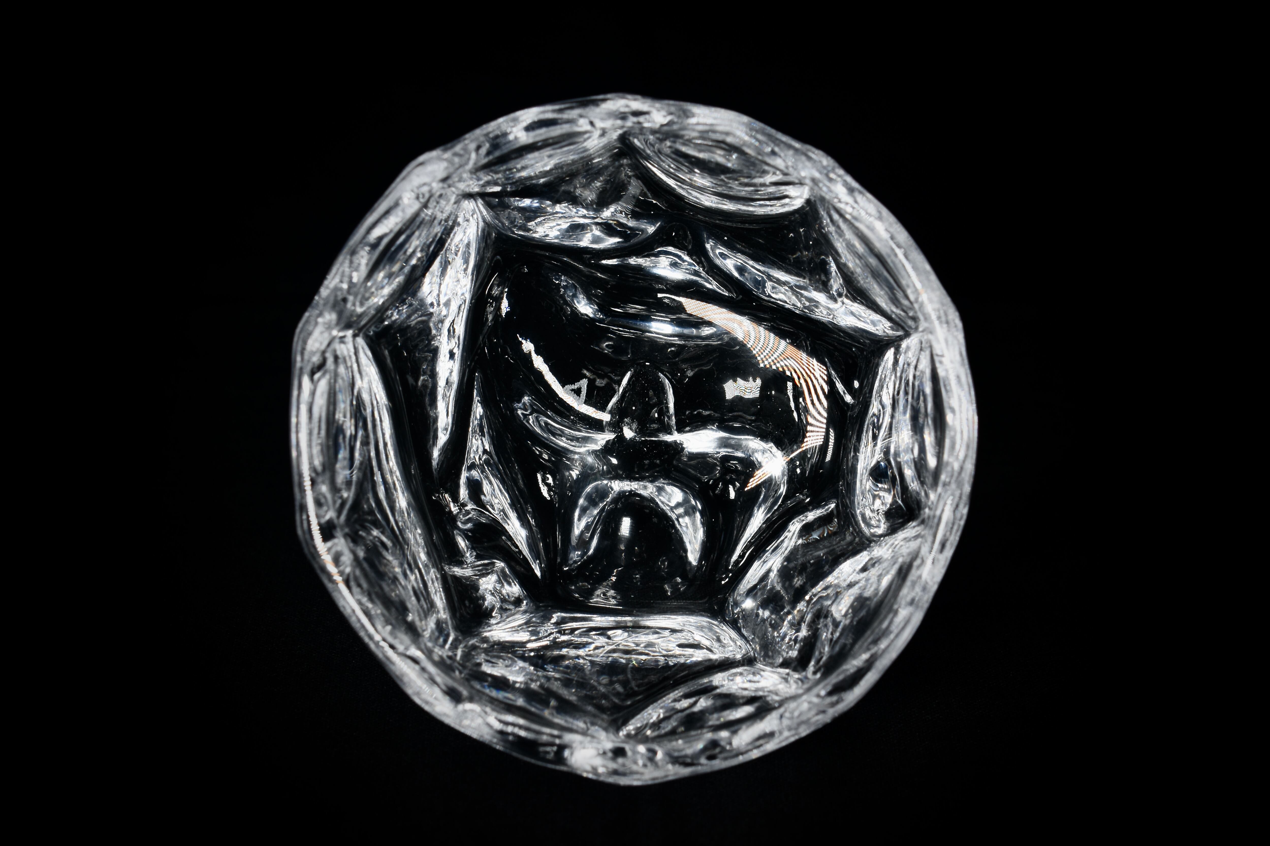 掘り出した粘土を造形して文様を施したPattern Cupの型をとり、その型に向かってガラスを吹き込み、粘土表面の細かい凹凸や文様を転写したガラス作品。