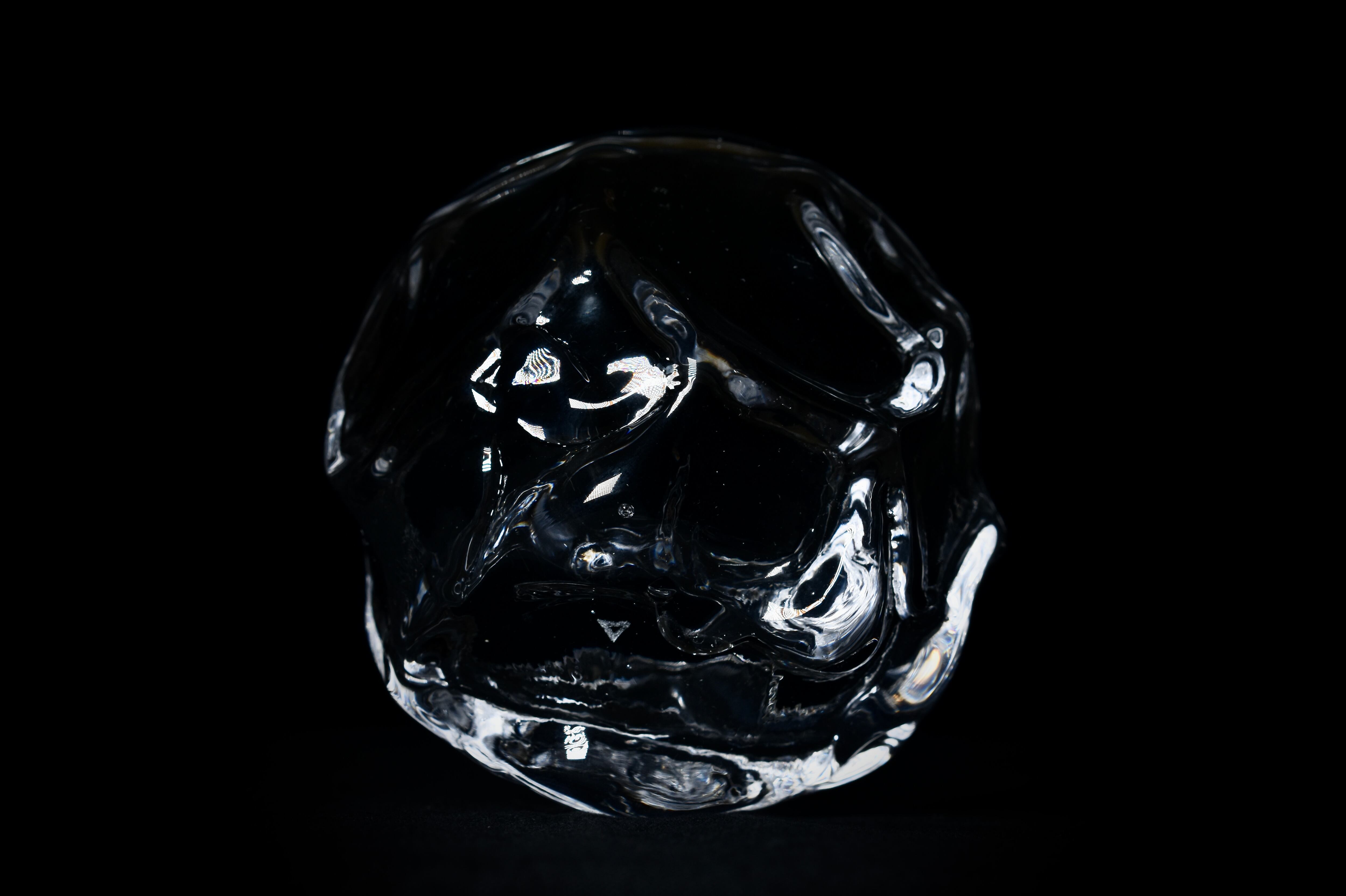 これまで制作したガラス作品よりも分厚くむっちりとした作りになっており、ガラスの素材としての存在を感じる心地よい重さに仕上がっています。