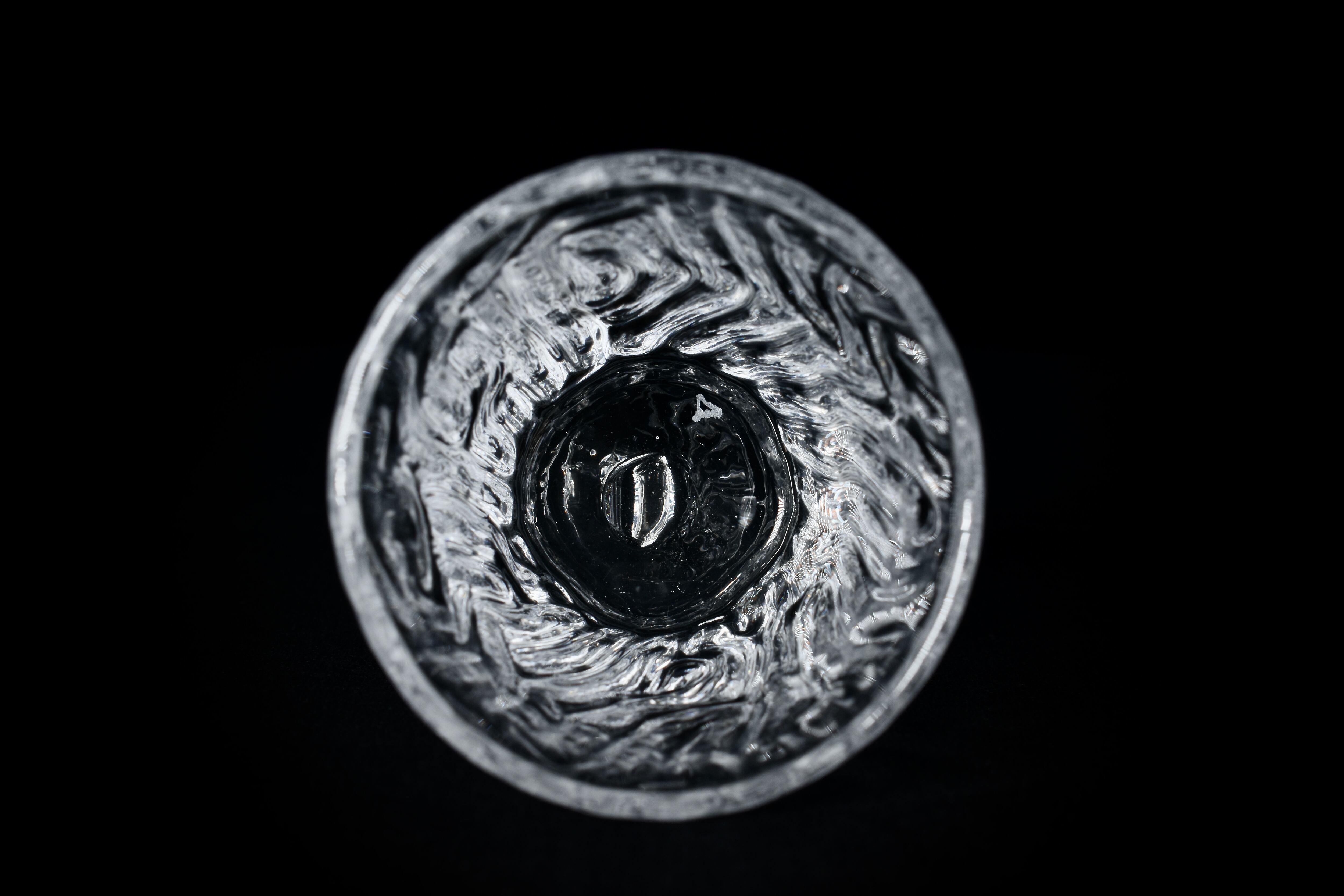 掘り出した粘土を造形して文様を施したPattern作品の型をとり、その型に向かってガラスを吹き込み、粘土表面の細かい凹凸や文様を転写したガラス作品。