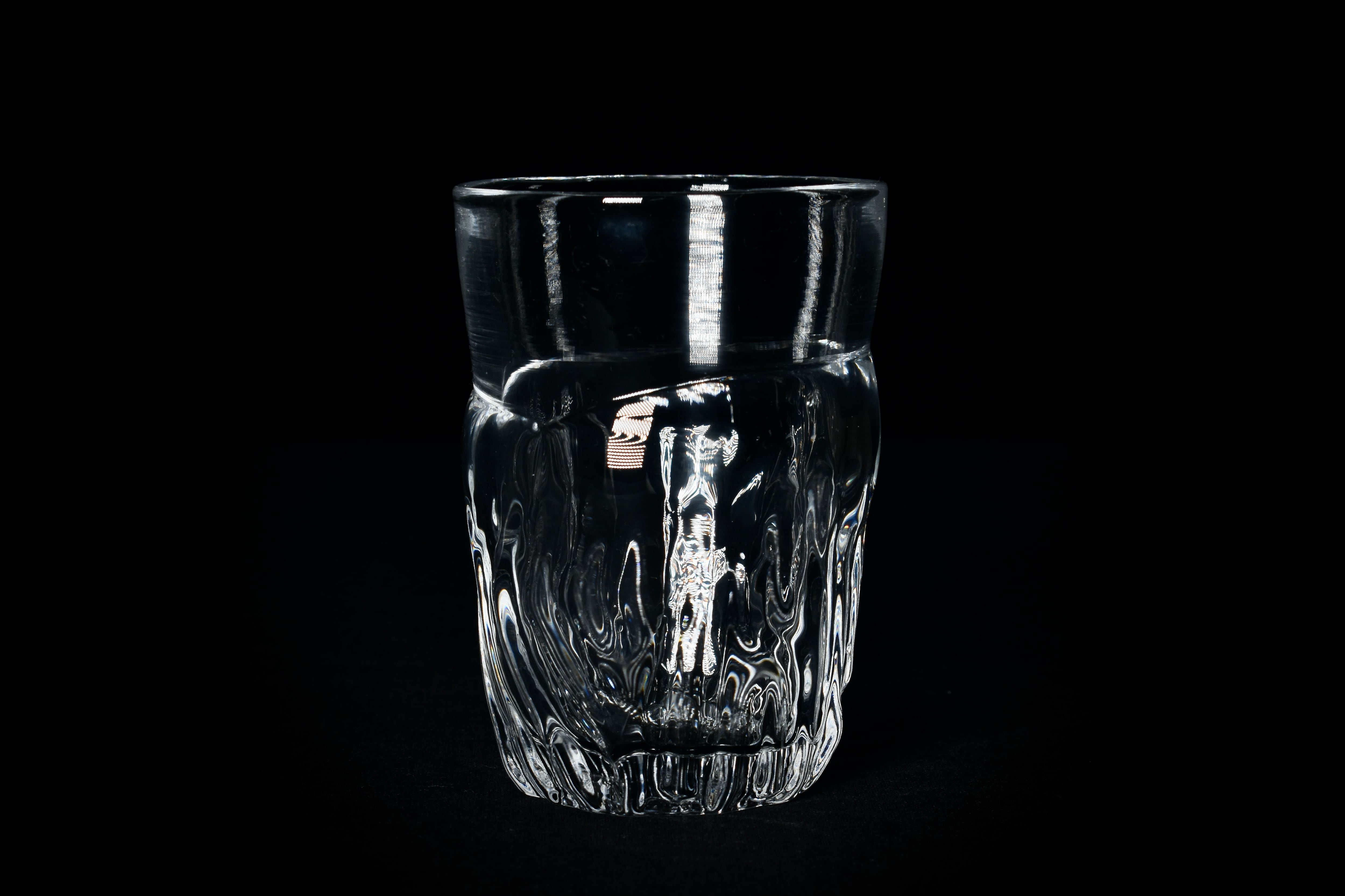 ガラス素材が持つ存在感と、薄い口当たりの両方を観察できる作品です。
