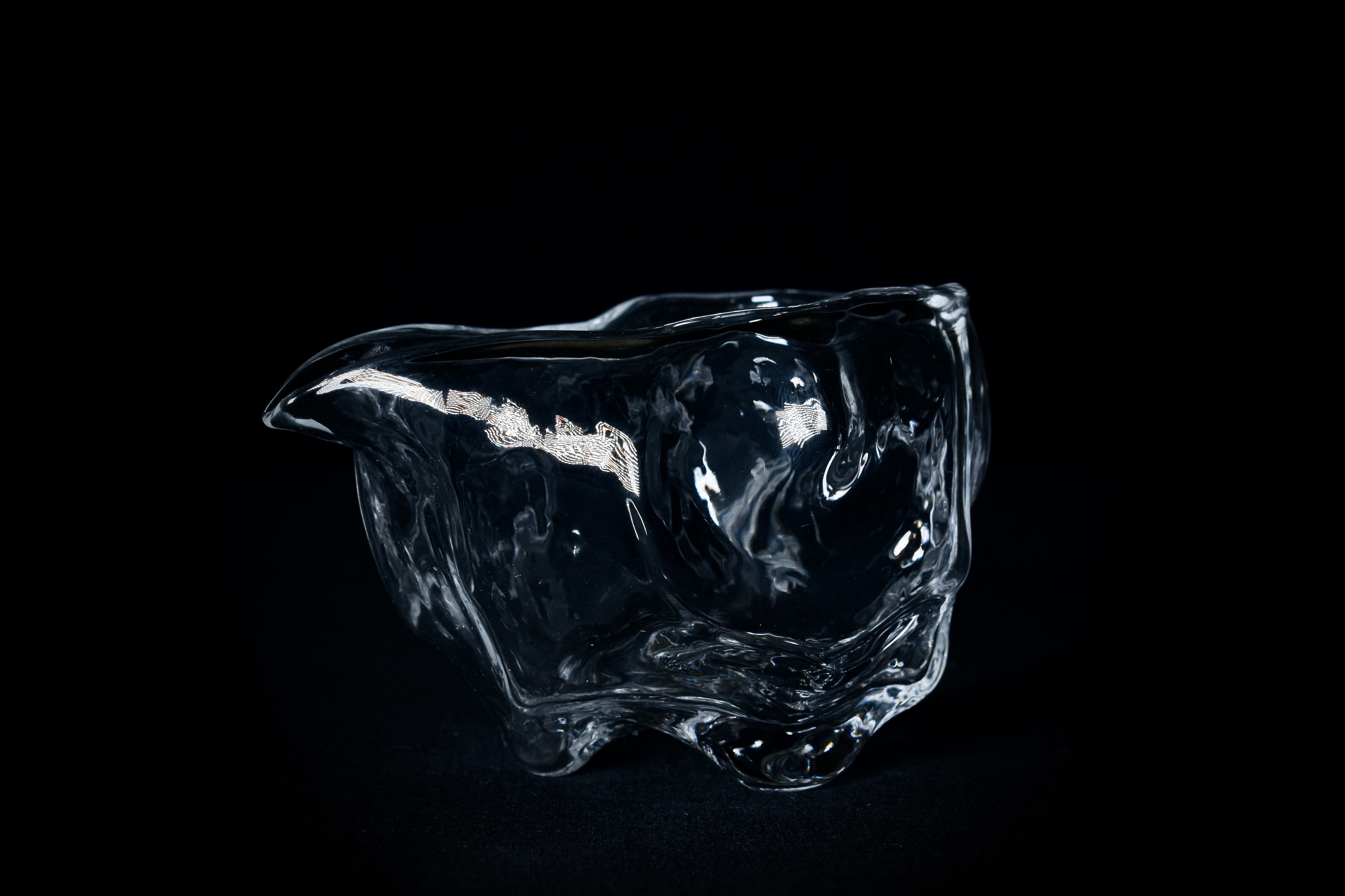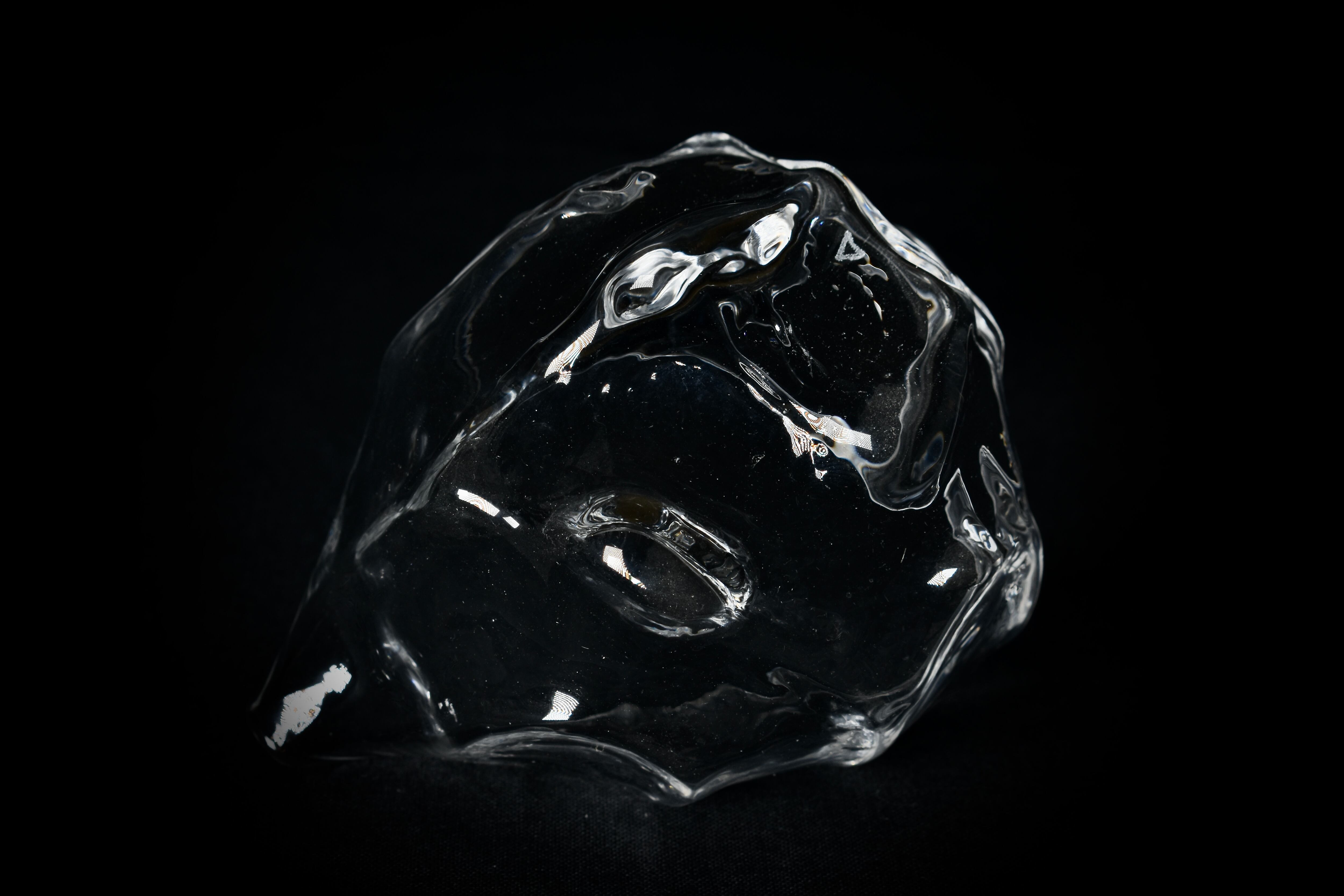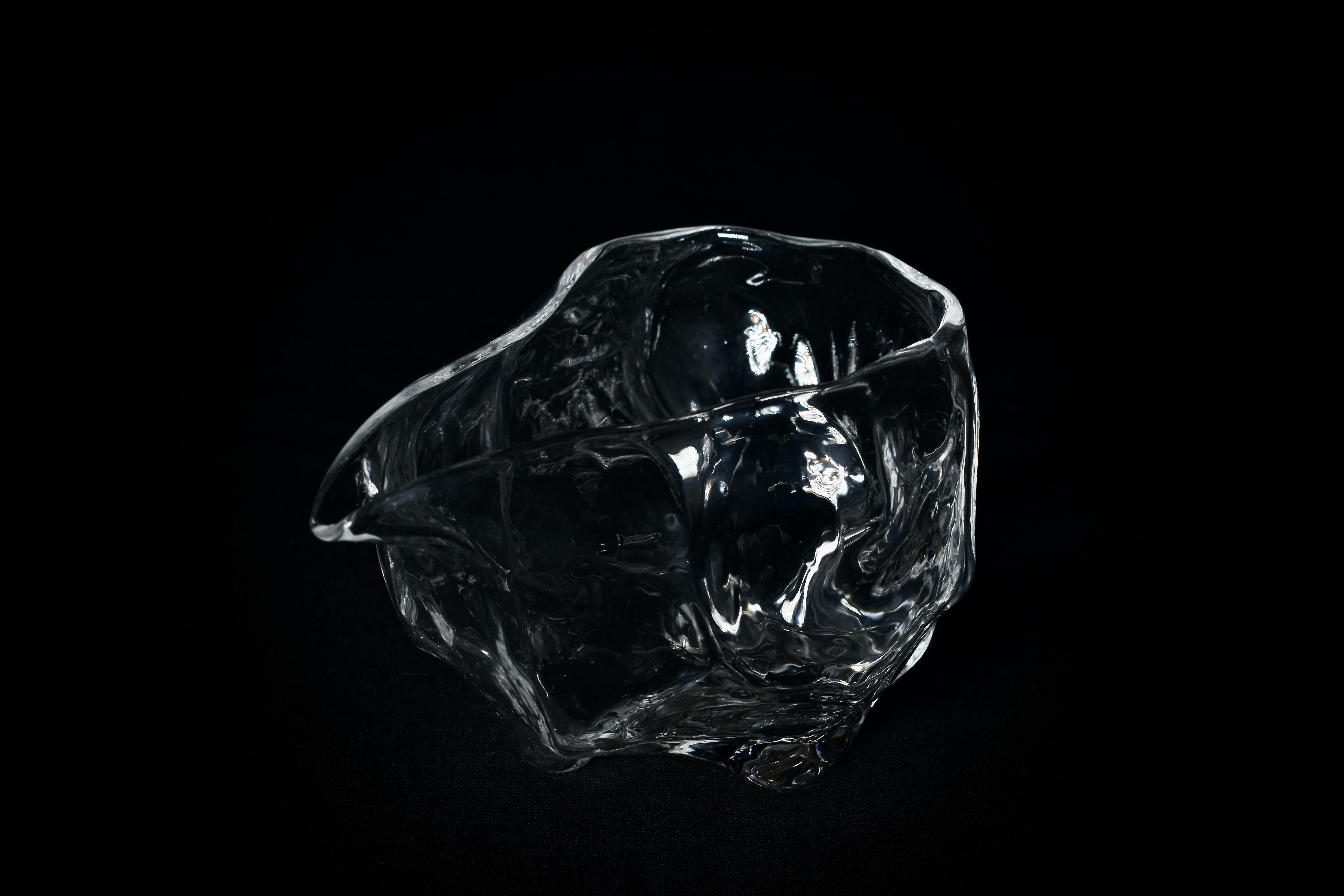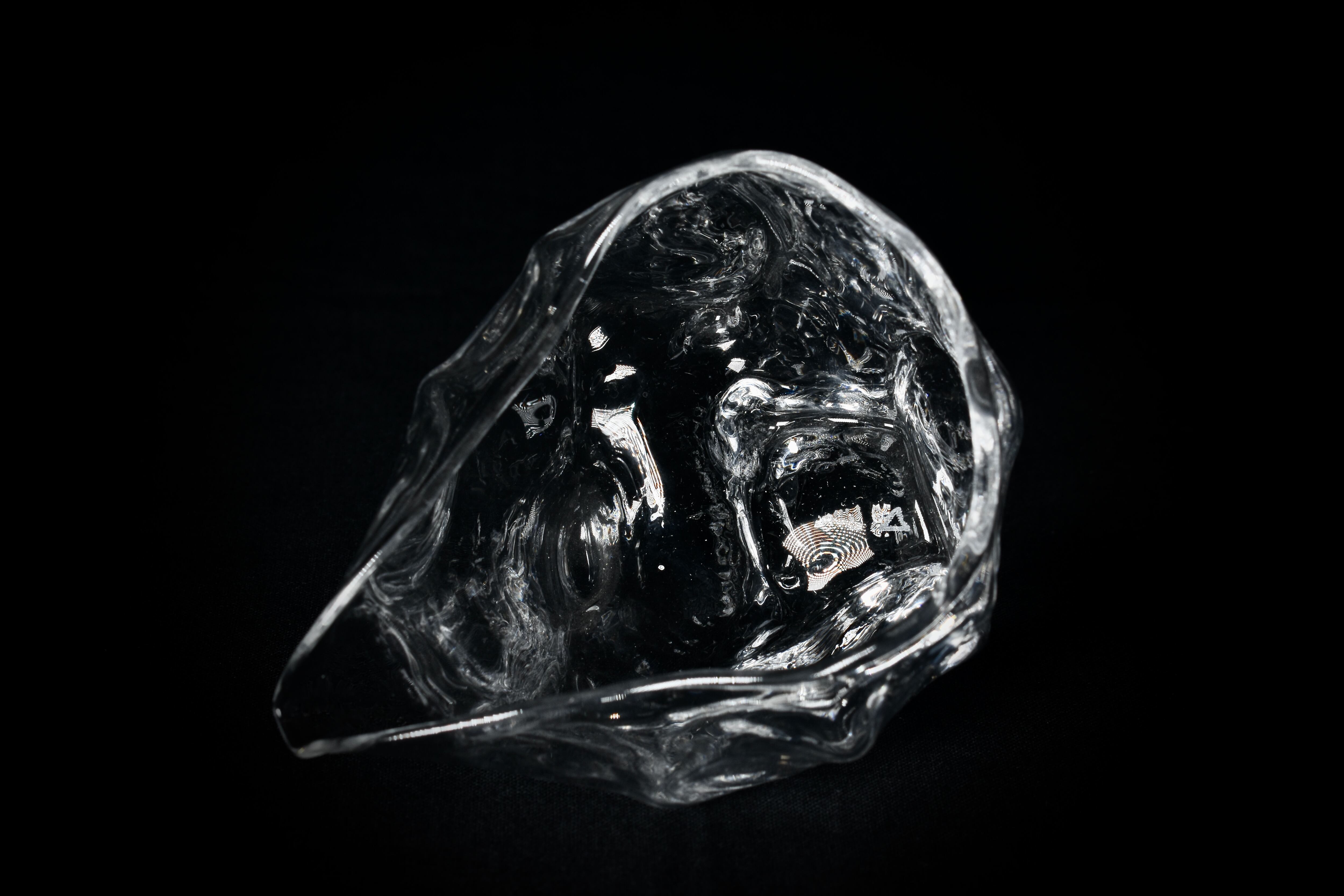 他のガラス作品も同様ですが、強く光が当たることで置いた場所に文様となって広がる透過光も観察できる作品です。