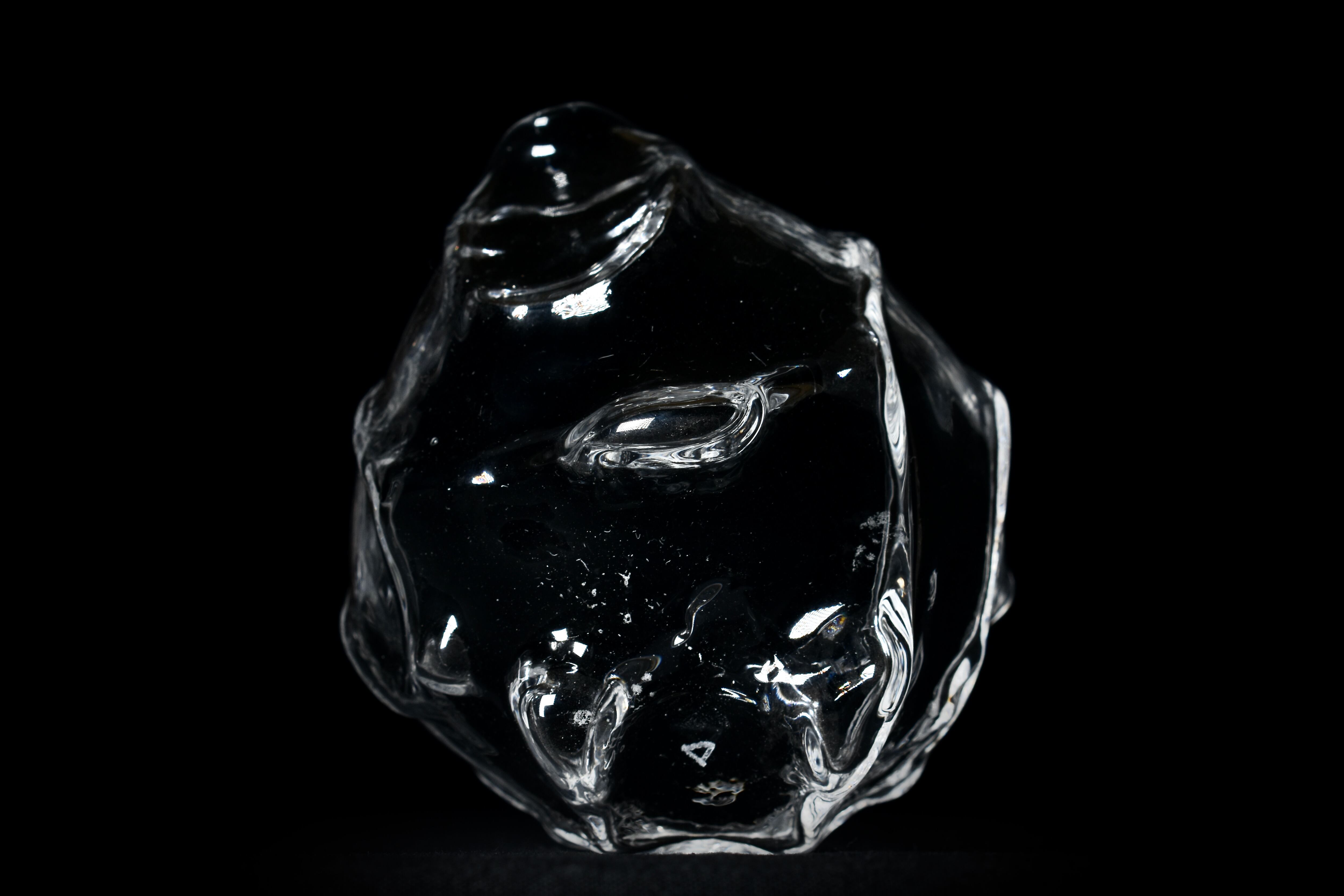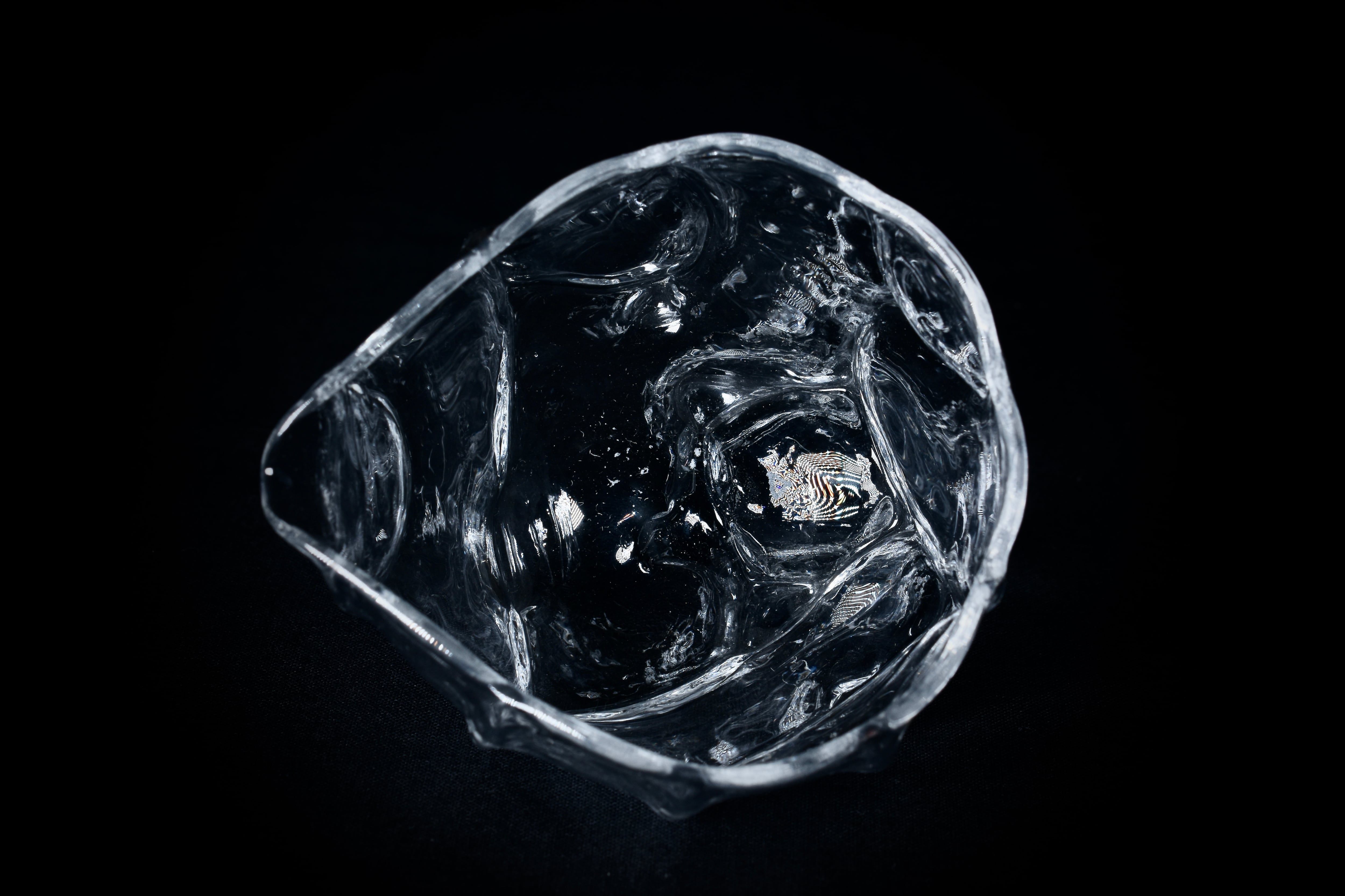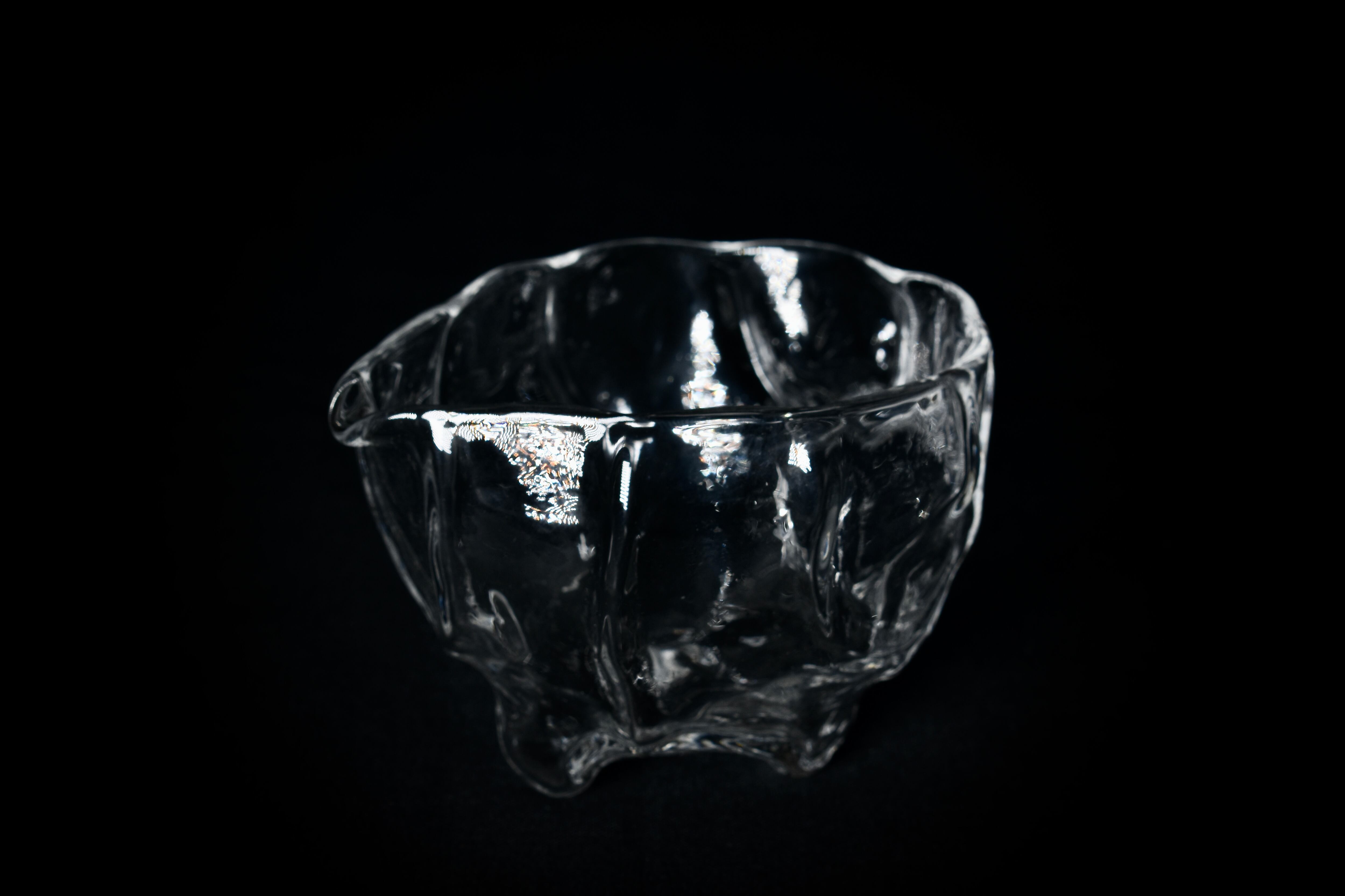 他のガラス作品も同様ですが、強く光が当たることで置いた場所に文様となって広がる透過光も観察できる作品です。