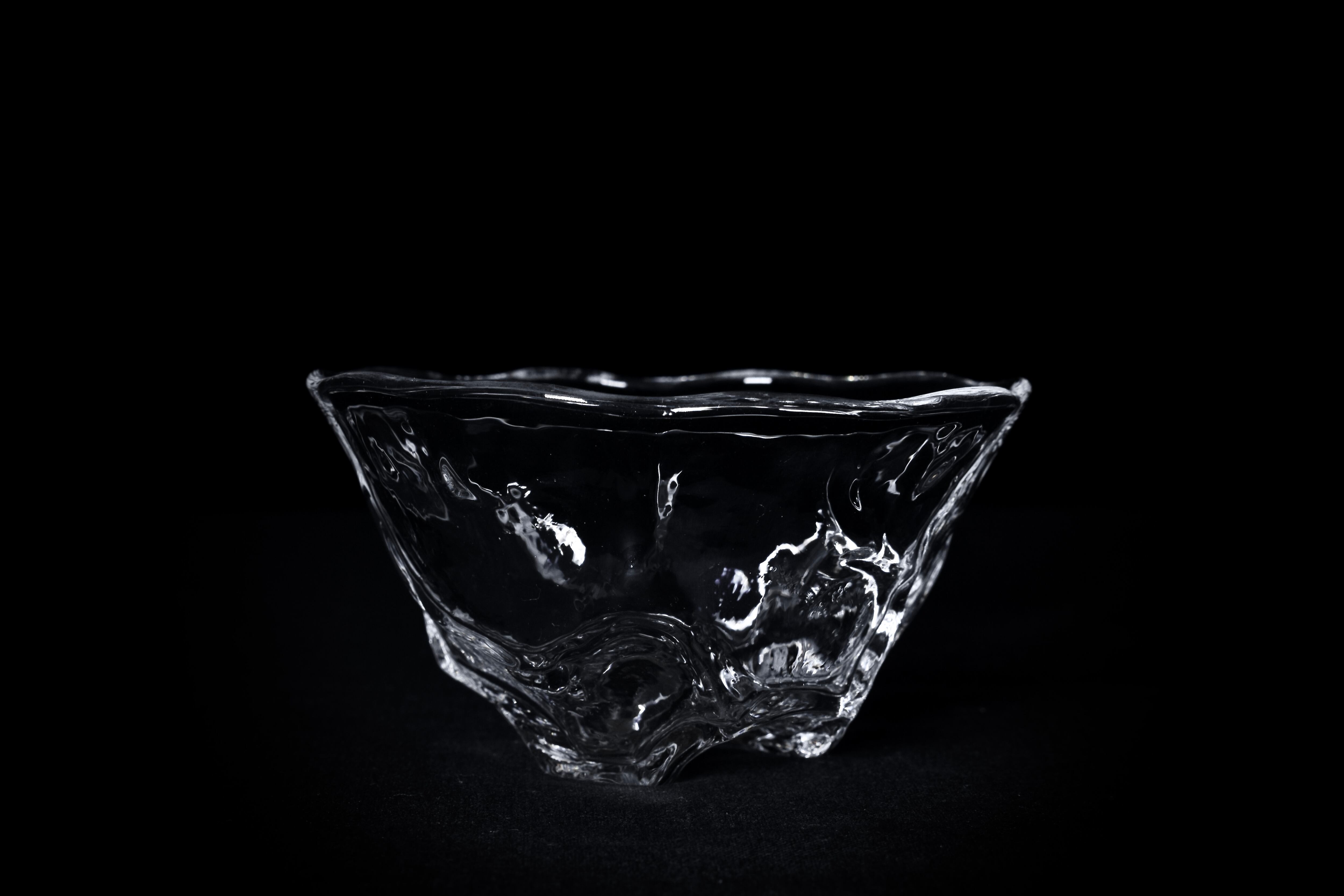掘り出した粘土を造形して文様を施したPattern Cupの型をとり、その型に向かってガラスを吹き込み、粘土表面の細かい凹凸や文様を転写したガラス作品。