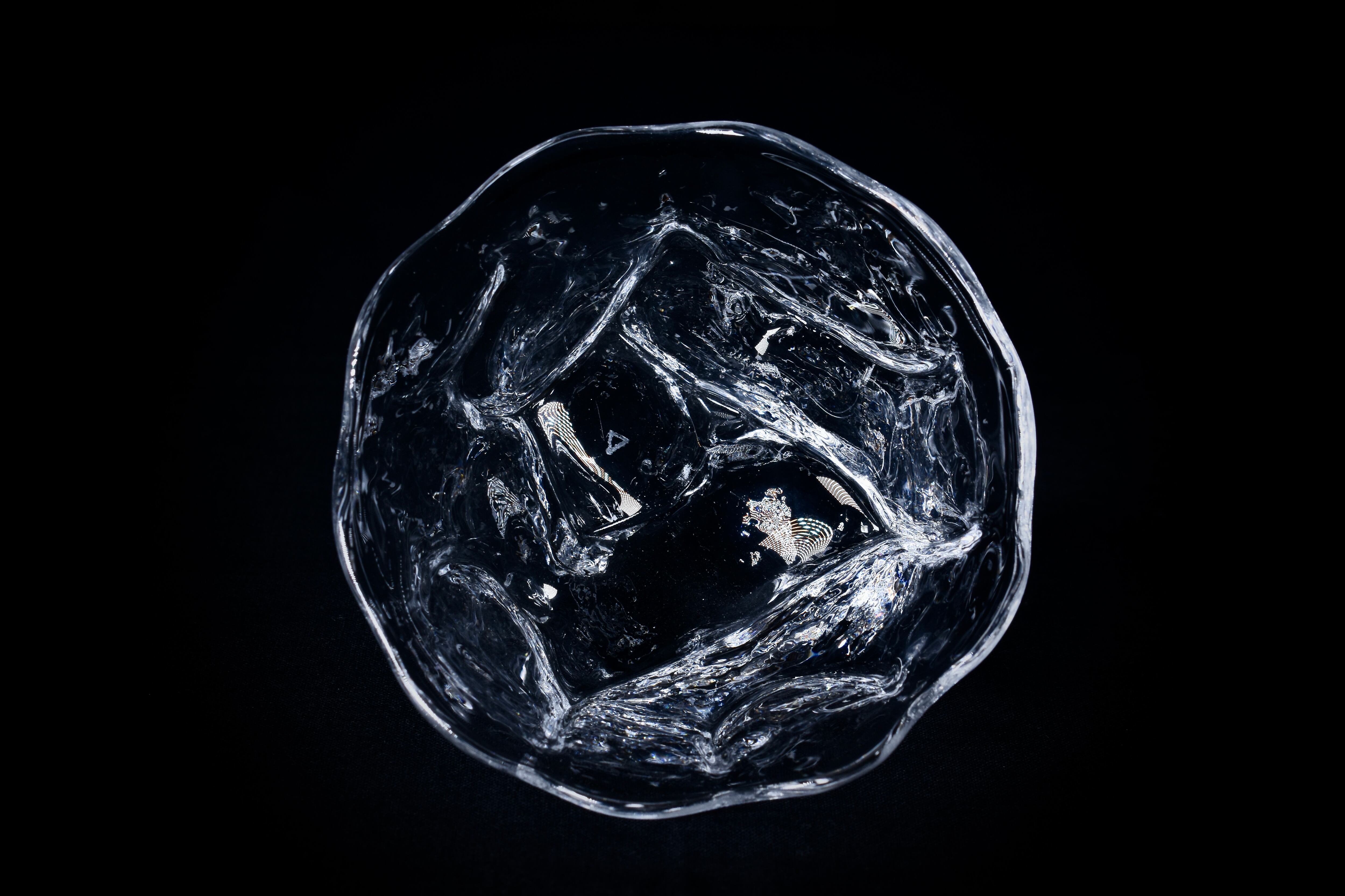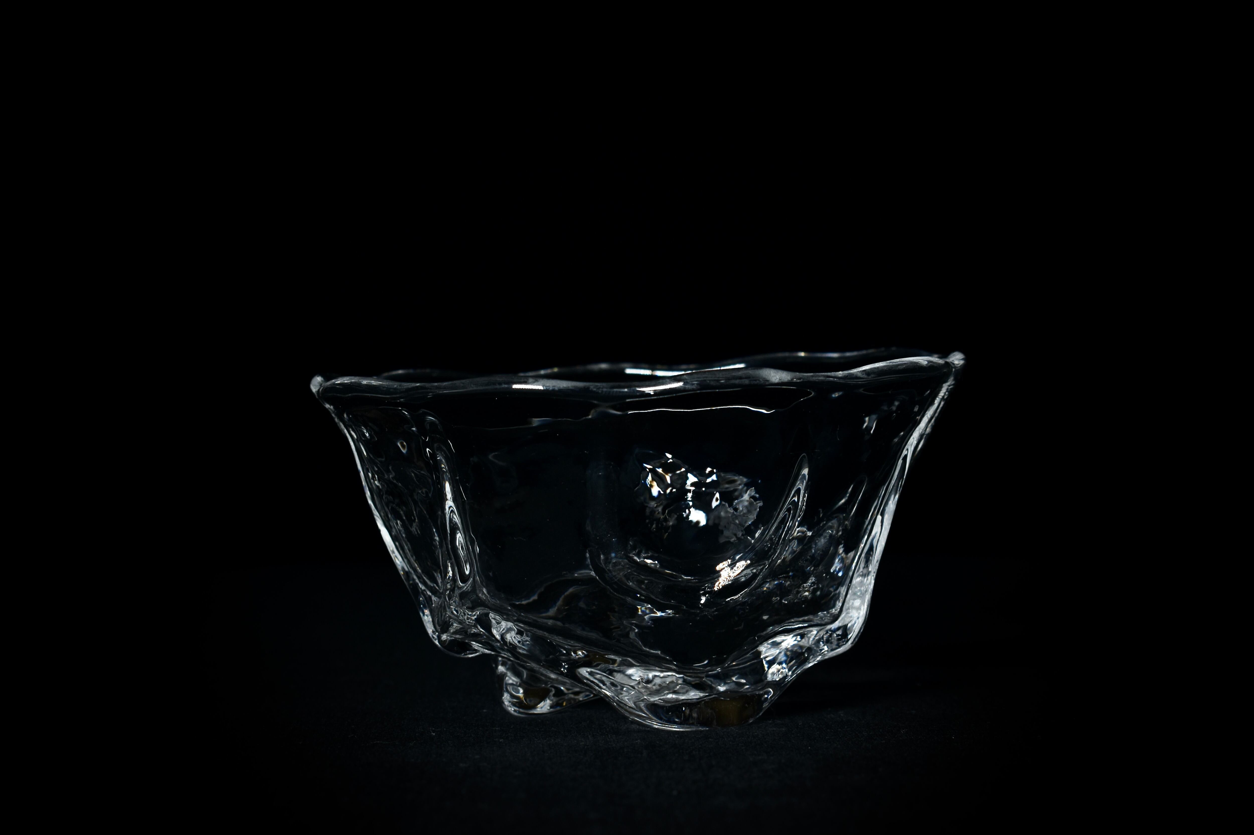 他のガラス作品も同様ですが、強く光が当たることで置いた場所に文様となって広がる透過光も観察できる作品です。